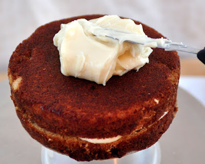 To cover the cake with fondant, you want to first cover the cake with a thin layer of icing.